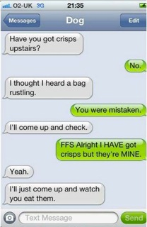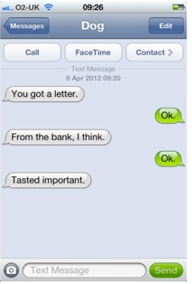 And finally….if dogs could send text messages…Grey texts are the dogs..green the owner