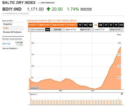 6.Below is a chart of the Baltic Dry Index which is the cost of moving bulk commodities around..as you can see the last month has seen a huge pick up …does this mean the Global recovery is gathering pace? Not sure but if everyone is moving more stuff around that’s a positive.