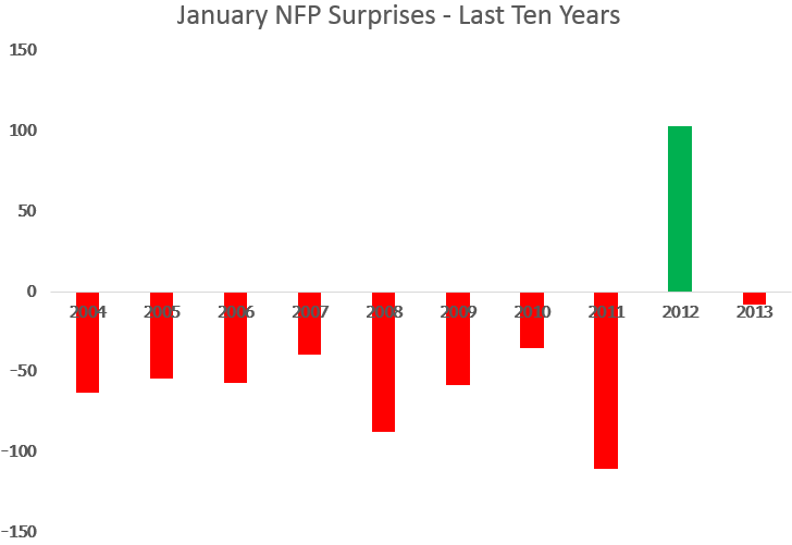 Potential for a negative surprise on the NFP number tonight (Non-Farm Payroll)
