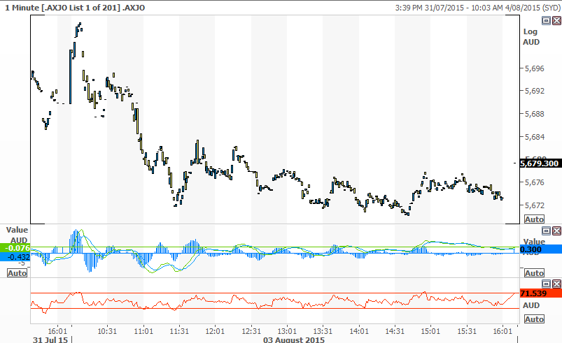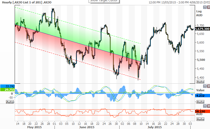 Looking like it is trying to break out A quiet dull start top the week as mining shares came under pressure due to commodity price falls and soft China data. A ‘Bank’ Holiday in NSW didn’t help volumes as we set ourselves up for a big week of economic data and the kick off in results. BHP – 1.02% reversed its recent thrust as did RIO -1.25% with results on Thursday and South32 (S32) -3.36 % having another shocking day. Diggers and Dealers kicked off today in Kalgoorlie with a number of small/mid cap gold miners presenting like Independence Group (IGO -5.82 %) ,Kingsgate (KCN) +1.52 % and Gold Road ( GOR) unchanged Energy stocks also were weaker as oil prices continue to fall, Oilsearch (OSH) – 2.81% were the biggest loser in large caps with small oilers falling heavily too as Australia Worldwide Exploration (AWE) – 4.76%, Sundance Energy (SEA) -6 %, Beach Petroleum (BPT) – 5.64% fare the worst. Financials eased back with more modest falls in Westpac (WBC) -0.03 % and Australia and New Zealand Bank (ANZ) unchanged outperforming their peers as they fell around 0.5%.Insurers though fared much better led by Suncorp (SUN) +0.42 % reporting tomorrow and potential special dividend perhaps? Insurance Group Australia (IAG) unchanged and even Medibank Private (MPL) +0.96 %. In the industrial landscape, gaming stocks found favour with Crown Resorts (CWN) +0.44 %, Aristocrat (ALL) +0.58 % and Echo Entertainment (EGP) +1.99 % all doing well. Other discretionary consumer stocks also in the green with JB Hi Fi (JBH) +0.47 %. Huge move from cloud collaborator for the global construction industry ,Aconex (ACX) + 12.61 % after talking record volumes of new business and positive cash flow of around $4.7m in their quarterly last Friday. Market star CSL -0.13 % came in for some profit taking as they struggle to break through the magic $100 level. News that they had completed the Novartis Influenza vaccine business acquisition fell on deaf ears. In corporate news Affinity Education (AFJ) + 11.49 % already under siege from G8 Education (GEM) +2.94 % are now under even more pressure following a cash alternative, to the scrip bid, of 80c.The stock is still trading above the bid price but with GEM having 19.9% it is hard to see them slipping through their embrace. Skilled Group (SKE) +2.92 % will book an impairment charge of up to $67 million, which has been triggered by the merger proposal by rival Programmed Maintenance (PRG) + 4.6 % to form an enlarged $700-million plus labour hire firm. IOOF (IFL) unchanged after being back in the media today as Senate hearings resume. PwC is yet to start its second ‘independent’ review nearly 5 weeks after the company announced they would do so. Always hard to be truly independent when the company is paying and frames the terms of reference for the inquiry. A copy of the first PwC report showed only two of the 13 allegations were investigated and the review scope was limited in a way that meant PwC were not allowed to interview the complainant, the person who was alleged to have done the wrong doing, or any member of the research team. Their emails, computers and other trading accounts were also not reviewed by PwC. Pretty limited review really and will not be a good look in the media. A new CEO for Federation Centres (FDC) – 4.33 % today with Angus McNaughton filling the spot from Novion replacing Stephen Sewell in a shock announcement. Sewell was the architect of the merger with Novion to create the country’s second biggest property trust with assets of around $22bn. Freelancer suspended today pending a capital raising. Two days after reporting a record result for the first half with revenue up 40% to $16.8m yet still a loss of around $800,000.Looks like a placement at around 135censt is on the cards to raise $10m and also a sell down of substantial shareholder Simon Clausen to raise another $30m In economic news, July ANZ job ads fell for the first time since March slipping 0.4% but remaining 9.3% ahead of the year on year number at 146,121.The RBA meets tomorrow but is odds on to keep rates unchanged yet again. Unemployment numbers are due on Thursday and we expect those to remain steady at 6%. Inflation numbers today from TD Securities/Melbourne Institute advancing 0.2% over the month and 1.6% for the year. Property rates and charges (+3.3 per cent), other food products (+5.5 per cent) and non-alcoholic beverages (+2.8 per cent). These were offset by price falls in water and sewerage (-3.6 per cent), alcohol and tobacco (-1.6 per cent), and automotive fuel (-2.3 per cent). Looks like buying pressure is easing ever so slightly in Sydney and Melbourne property as all the banks have now raised rates for investor loans. The Clearance rate in Sydney and Melbourne both fell this weekend,however house prices ran another 2.8% in July with Melbourne marginally ahead (up 6.1%) of Sydney (up 5.4%) as RP Data values Aussie homes at a massive $6 Trillion. Not even sure how many zeros there are in $6 Trillion! HSBC reported a 10 per cent increase in earnings for the first half of the year, boosted by bumper profits in Hong Kong. They also announced the sale of its Brazil unit to Banco Bradesco SA for 17.6 billion reais ($7 billion). Pre-tax profits in the six months to the end of June were $US13.6 billion, up from $US12.3 billion a year earlier and well above analysts’ average forecast of $US12.5 billion. In Asia, China once again continued its fall after the underwhelming official Caixin/Markit PMI number today coming in at 47.8, the lowest reading since November 2011.