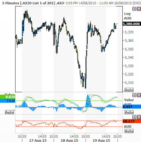 ASX 200 up 77.1 at 5380.2.Banks bounce. Woodside cheers and Penfolds kills it. Seek gets lost and China continues to shed. Dow futures down 60.