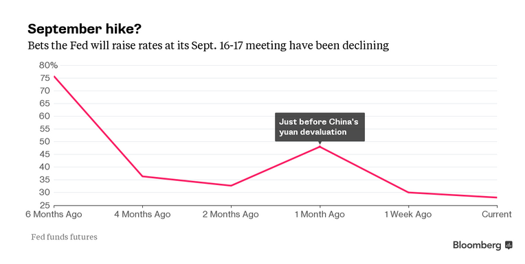 And finally the odds on a rate increase have fallen as volatility has increased.