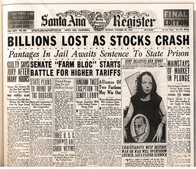 - Anniversary of Black Thursday 24th October 1929 when the US market fell 11%. Considered the first day of the great crash.