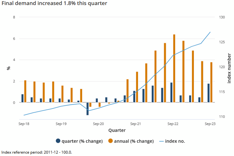 PPI – Higher prices for construction outputs, petroleum and energy were compounded by broad-based price increases in services, particularly health and child care services
