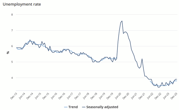 - Jobs data as forecast but full-time employment decreased by 106,600. Part-time employment increased by 41,400 – Showing a slowdown in the local economy perhaps.