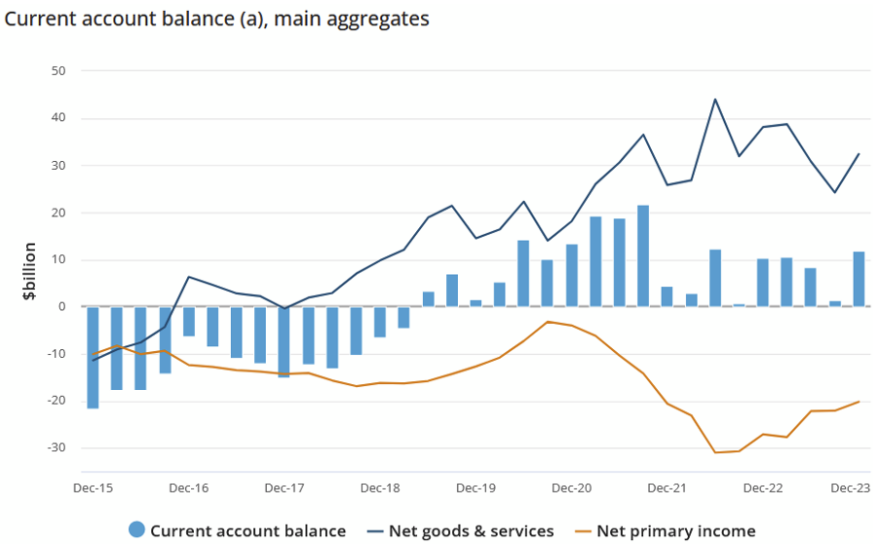 - The capital and financial account deficit was $9,730m, a turnaround of $13,214m on the September quarter 2023 surplus.