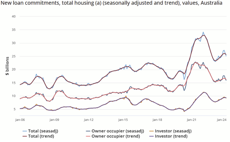 - for owner-occupier housing fell 4.6% to $15.9b but was 3.4% higher compared to a year ago