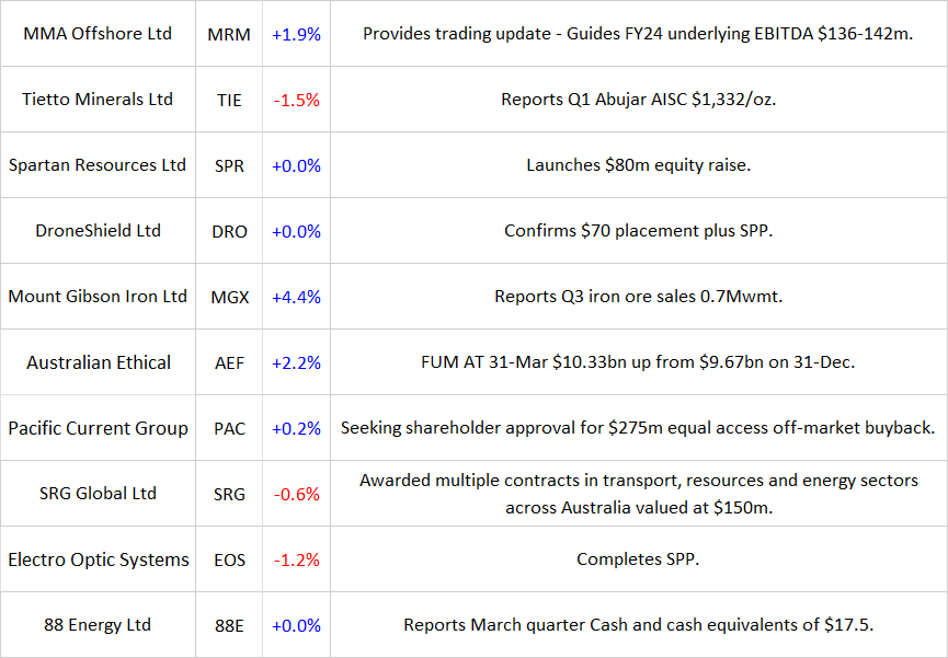ASX 200 rose 37 points to 7639 (+0.5%) off highs but bounces off 7600. Jobs data fails to stir. Good news for Iron ore miners with BHP production numbers and higher ore prices in Asia saw BHP up 1.5%, RIO up 1.7% and FMG lagging. Base metals finding friends again, MIN up 1.9% and PLS up 2.1%, with S32 modestly better, up 1.3%. Gold miners slightly mixed, EVN off 3.9% on broker downgrades after big rally. NST up 0.4% and NEM up 1.3%. Oil and gas stocks eased, WDS down another 0.4%. STO off 0.9% on production numbers. Banks were back in vogue, CBA up 0.7% and NAB up 0.9%, with the Big Bank Basket at $200.47 (0.7%). Insurers mixed, MQG up 1.2%. Healthcare remains under pressure, CSL is down again, and RMD trashed 4.3% on new drug trials from Ely Lilly on an alternative to sleep disorders. Industrials firmed slightly, and QAN had a good day, up 3.4%. Solly Lew has crept up the register in MYR to 31%. In corporate news, DRO conducted its own drone strike to raise $75m after big surge yesterday. MRM provided a good update, BSL fell 2.4% on US steel tariff changes, and CGF did well up 5.3% after raising guidance. On the economic front, we had an inline jobs numbers coming in at 3.8% unemployment. Nothing to see here, ANZ says first rate cut in November. Asian markets firmed, Japan up 0.5%, HK up 1.2% and China up 0.5%. 10-year yields at 4.29%. Dow Futures up 91 points. NASDAQ Futures up 88 points.