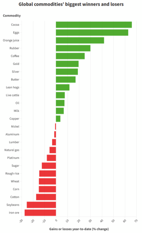 - Positive sectors: Iron ore. Gold miners. Insurers. Tech.