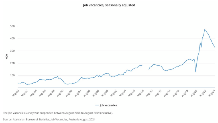 Australian job vacancies – Total job vacancies were 329,900, a decrease of 5.2% from May 2024. RBA will be pleased.