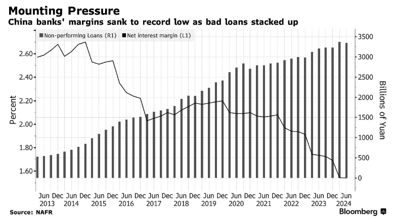 - China is considering injecting up to 1 trillion yuan ($142bn) of capital into its biggest state banks to increase their capacity to support the struggling economy.