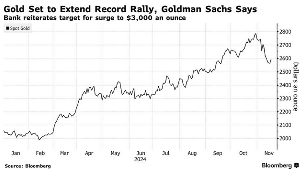 - Gold will rally to a record next year on central-bank buying and US interest rate cuts, according to Goldman Sachs.