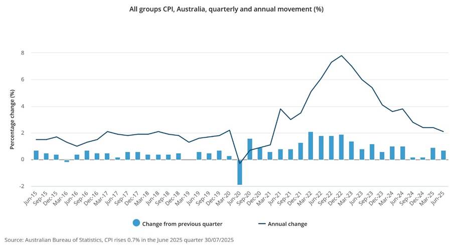 - Over the twelve months to the June 2025 quarter, the CPI rose 2.1%.