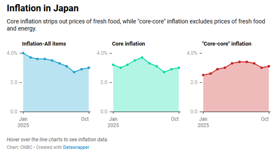- Japanese exports grew 3.6% year on year compared with expectations of a 1.1% growth by economists polled by Reuters. Exports to Asia climbed 4.2% and shipments to Western Europe surged 8.8% year on year. The headline inflation rate rose to 3%, staying above the BOJ’s 2% target for 43 straight months.