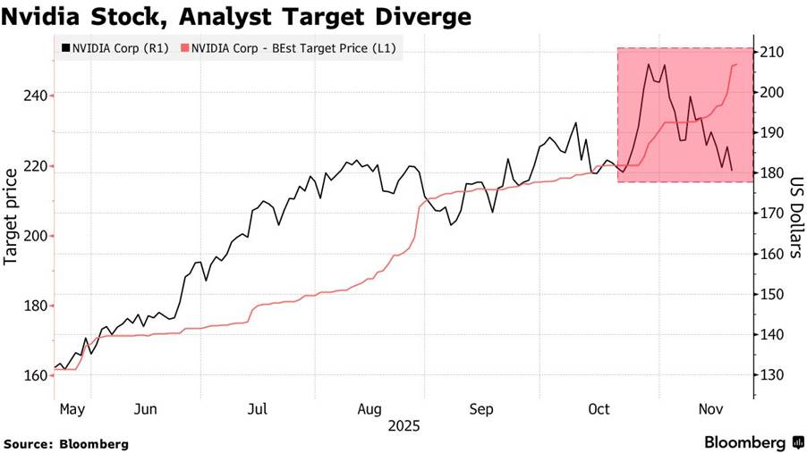 The ASX 200 dropped another 136 points to finish at 8417, bring total losses for November to 5% so far – placing it on track for the worst month since September 2022. Resources were pummelled, BHP fell 3.2% on Chinese ore embargoes with RIO off 3.2% and FMG tumbling 5.5%. Gold miners were also hit hard despite bullion holding up, NEM down 6.1% and EVN off 4.5%. Lithium stocks saw selling back in aggressively, LTR down 8.4% and PLS off 6.9%. Base metal stocks and rare earths in trouble too, ELV down 11.8% and ILU down 11.6%. Energy stocks also under pressure, WDS down 2.7% and STO falling 3.0%.