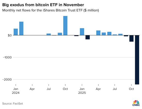 - Blackrock’s iShares bitcoin fund sees record exodus as crypto heads for worst month since 2022.