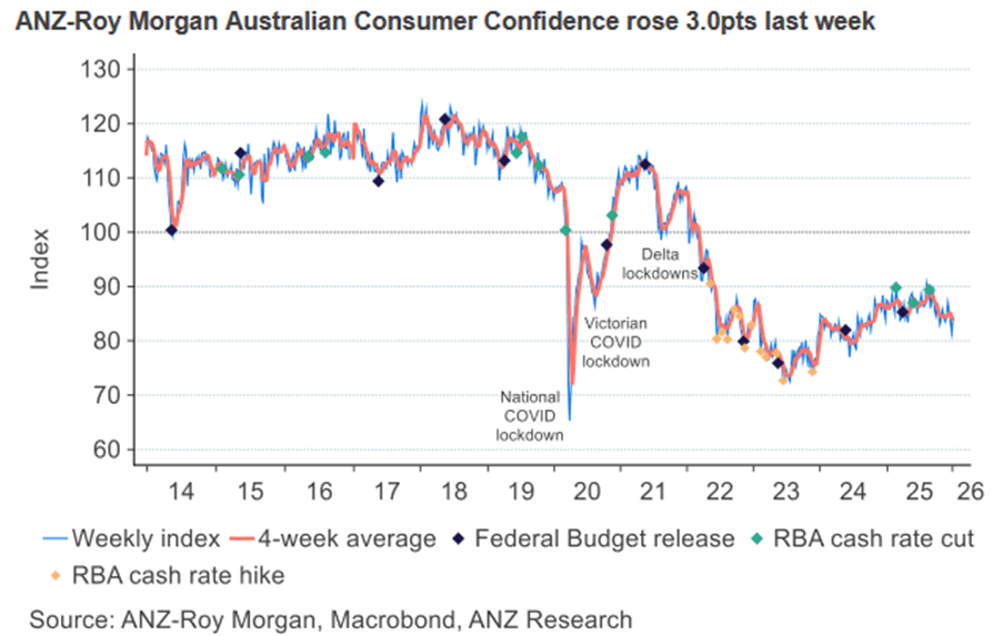 - Consumer confidence has had its weakest New Year’s release in more than 15 years as it rose 3 points last week to 84.5, ANZ-Roy Morgan data shows.