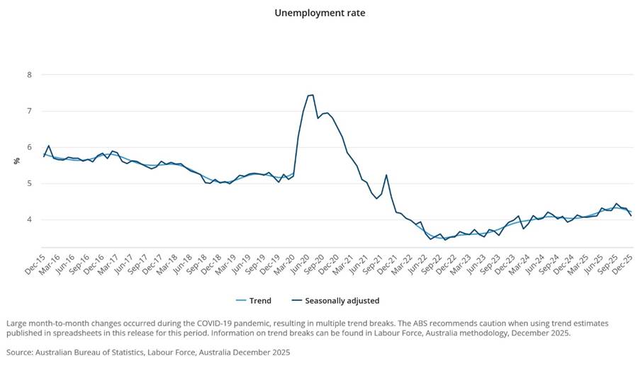 - Unemployment drops to 4.1%. RBA now being tipped to raise rates in February. AUD climbs above 68c. 70c?