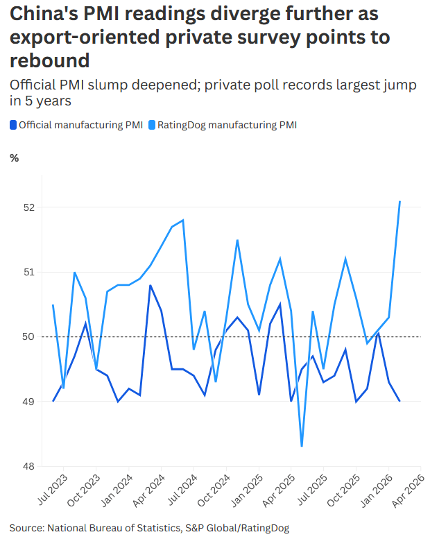 • The composite PMI, a broader measure that tracks activity across manufacturing and services, dropped to 49.5 from 49.8 in January, the official data showed.