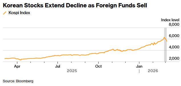 • Gangnam style panic on the Korean market. Biggest two-day crash since 2008! The losses were driven by the heavyweights that had supercharged the market higher until last month — Samsung Electronics Co., SK Hynix Inc. and Hyundai Motor Co. Down 12%